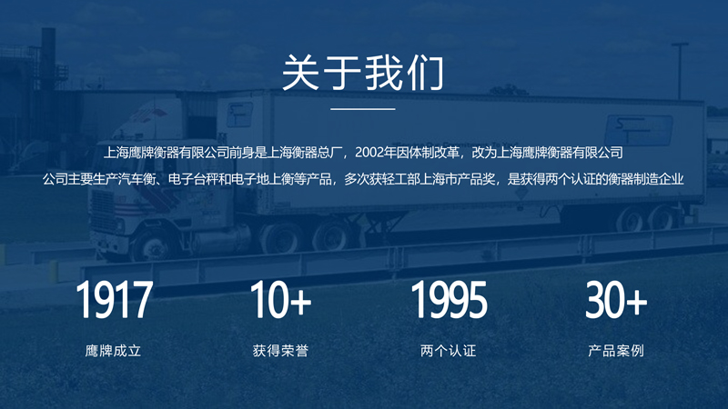 上海鷹牌衡器有限公司是上海衡器總廠轉制的企業,前身是上海衡器總廠,創建于1917年,是地磅等衡器設計、制造廠家,主營電子地磅、電子秤以及地磅維修,2002年因體制改革,改為上海鷹牌衡器有限公司!